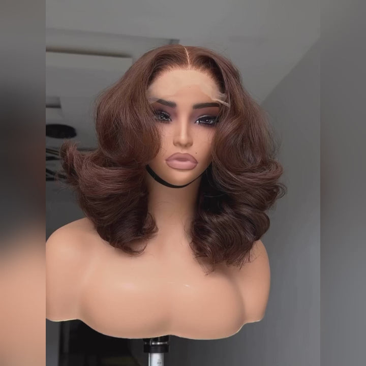 Firieya Brown Color Bob Wig 13x4 HD Frontal Lace Wig Body Wave Pre Plucked Human Hair Wig